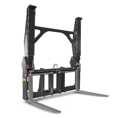 FORK RACK WITH HYDRAULIC TINE POSITIONERS Hydraulically powered forks allow for quick adjustability of fork spacing, all from the seat of the...