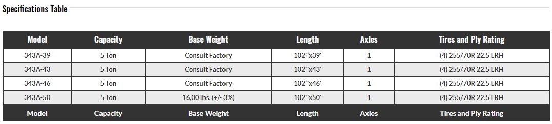 Axles    (1) 25,000 lbs. Dual Tire, Oil Bath Bearings (RTAC Legal Width), Automatic Slack Adjusters