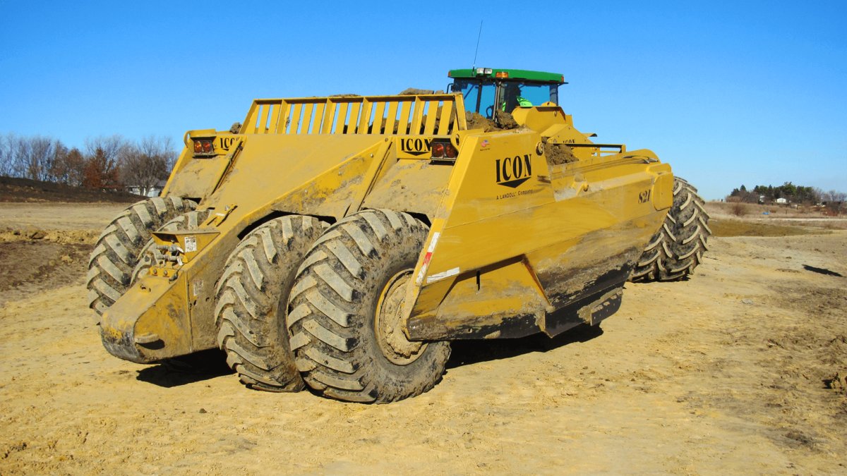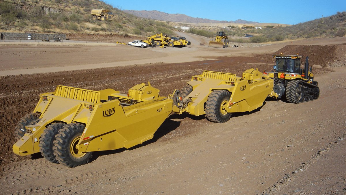 The ICON 800 Series Scrapers are top of the line pull-type earthmovers. These units are full-fledged industrial construction machines capable of handling the toughest earthmoving challenges. Designed for use behind rubber tracked or rubber tired tractors, these units will harness up to 600 HP. Sizes include 19, 21 and 25 yard bowls.