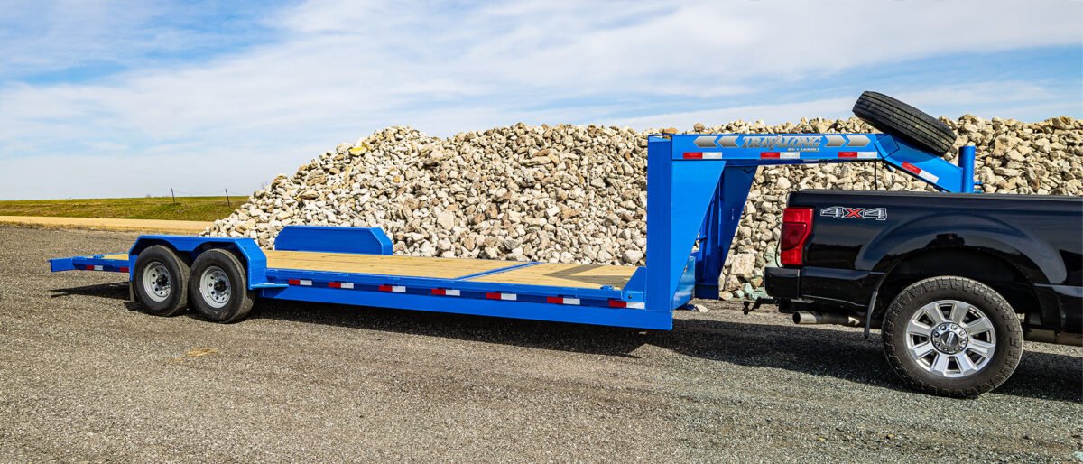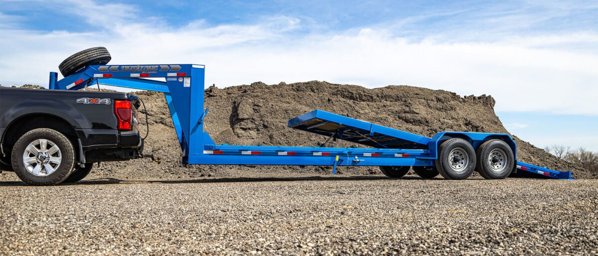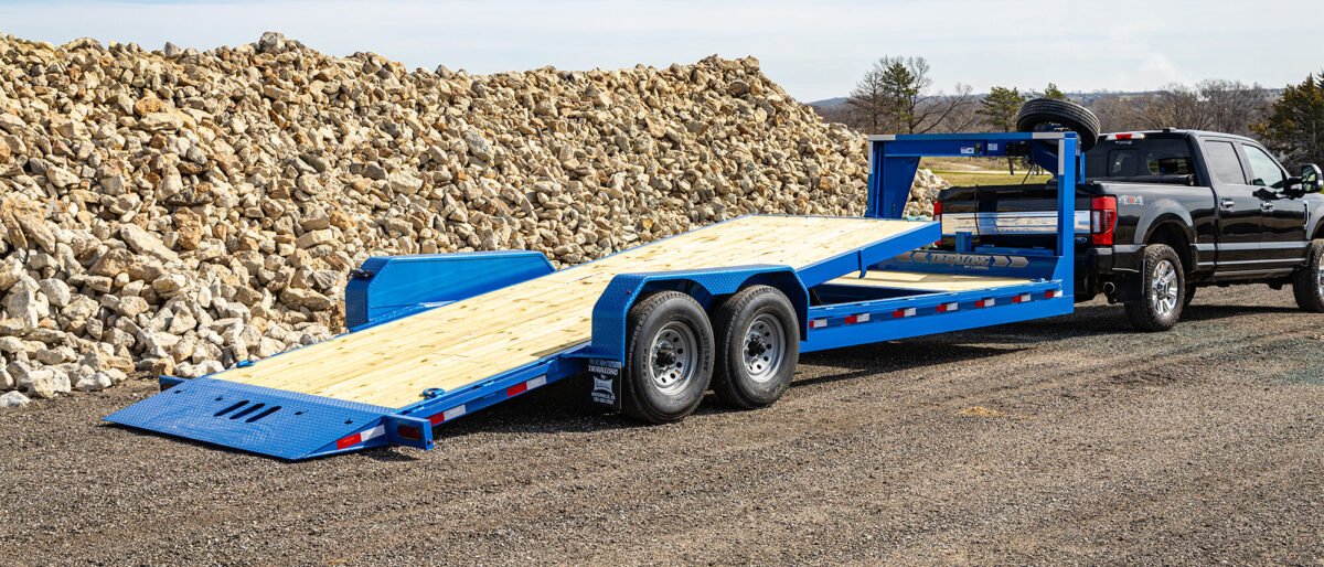 Hydraulic Lock Valve & Pressure Tank 74″ Wide Tiltable Deck 2″ x 16″ Dampening Cylinder 22″ Deck Height Radial Tires Safety Chains & Hooks 14 gauge Treadplate Fenders Breakaway Battery and Maintainer LED Lighting 11 Degree Tilt Spare Rim Stake Pockets & Rub Rail